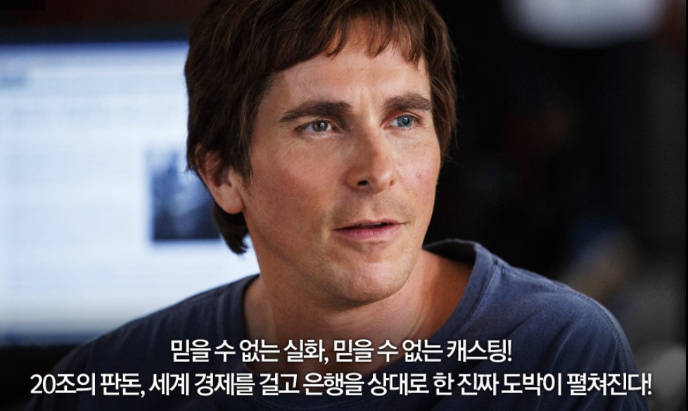 그렇다고 어디 다큐멘터리 영화 같은 건 아니고, 나름 '크리스천 베일', '브래드 피트'와 같이 쟁쟁한 배우들이 나오는 영화입니다. 저도 경제 영화만 보는 건 아닙니다. 저도 마블, DC 영화 다 봤고, 넷플릭스 구독하고 있습니다. : )