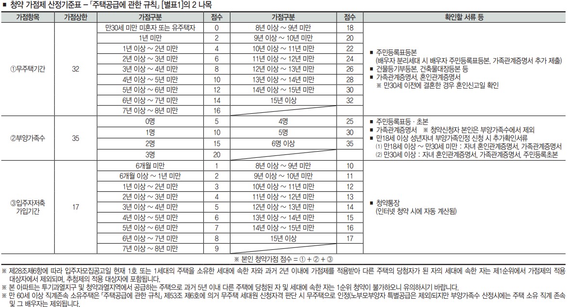 청약 가점제 산정기준표